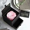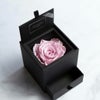 MATERIAL:プリザーブドフラワー(ダイヤモンドローズ)/ペーパーボックス、透明スリーブ、リボン、ジュエリークッション