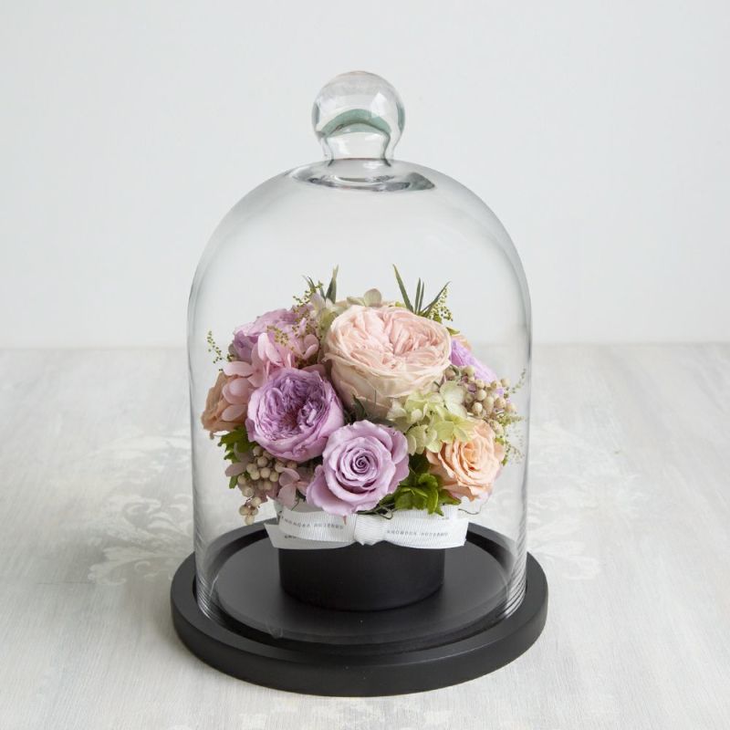バラが最も美しい瞬間を、ガラスドームにおさめました。