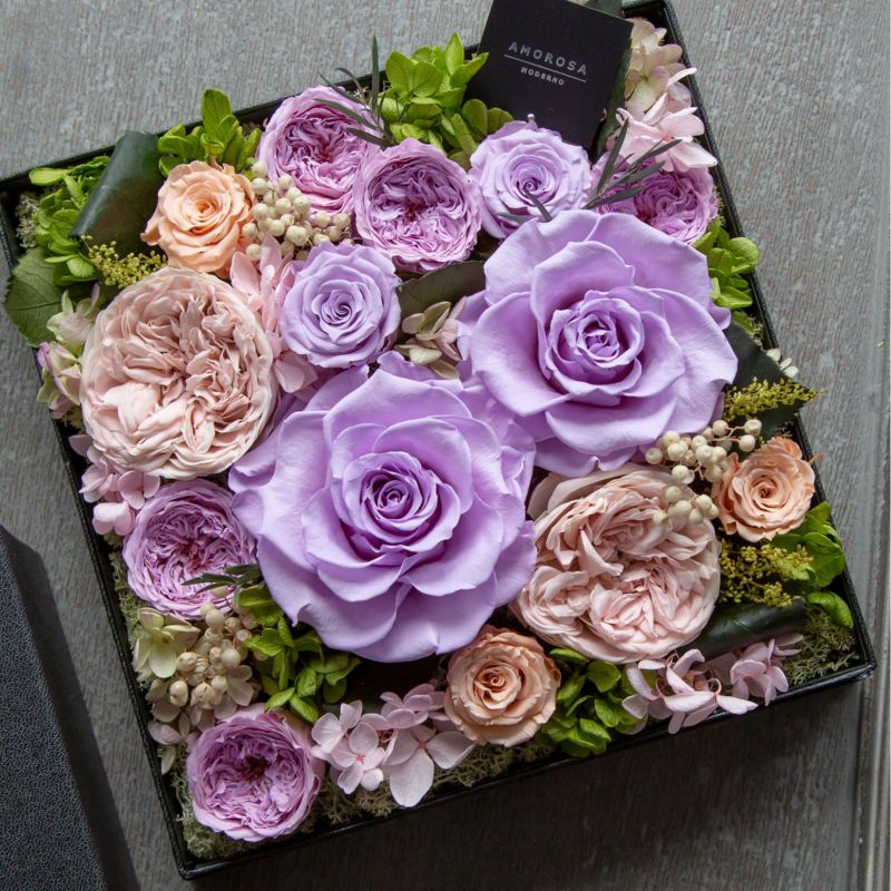 ときに驚きを持って、様々な言葉で表現されるプリザーブドローズ「AMOROSA」。スペイン語で「愛」という名をもつ最高級プリザーブドローズ。圧倒的な大輪、ベルベットのような質感。肉厚の花びら、深い色合いなどが特徴。その、世界でも類を見ないほど美しく花開いた薔薇は、世界中から高く評価されています。