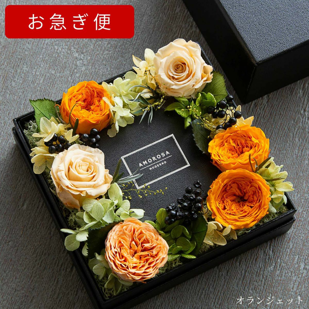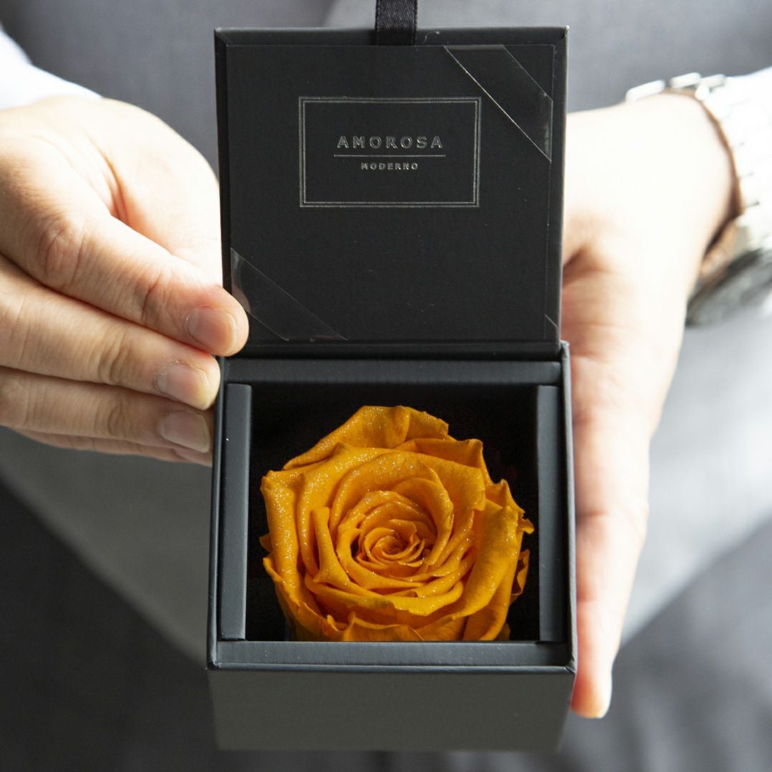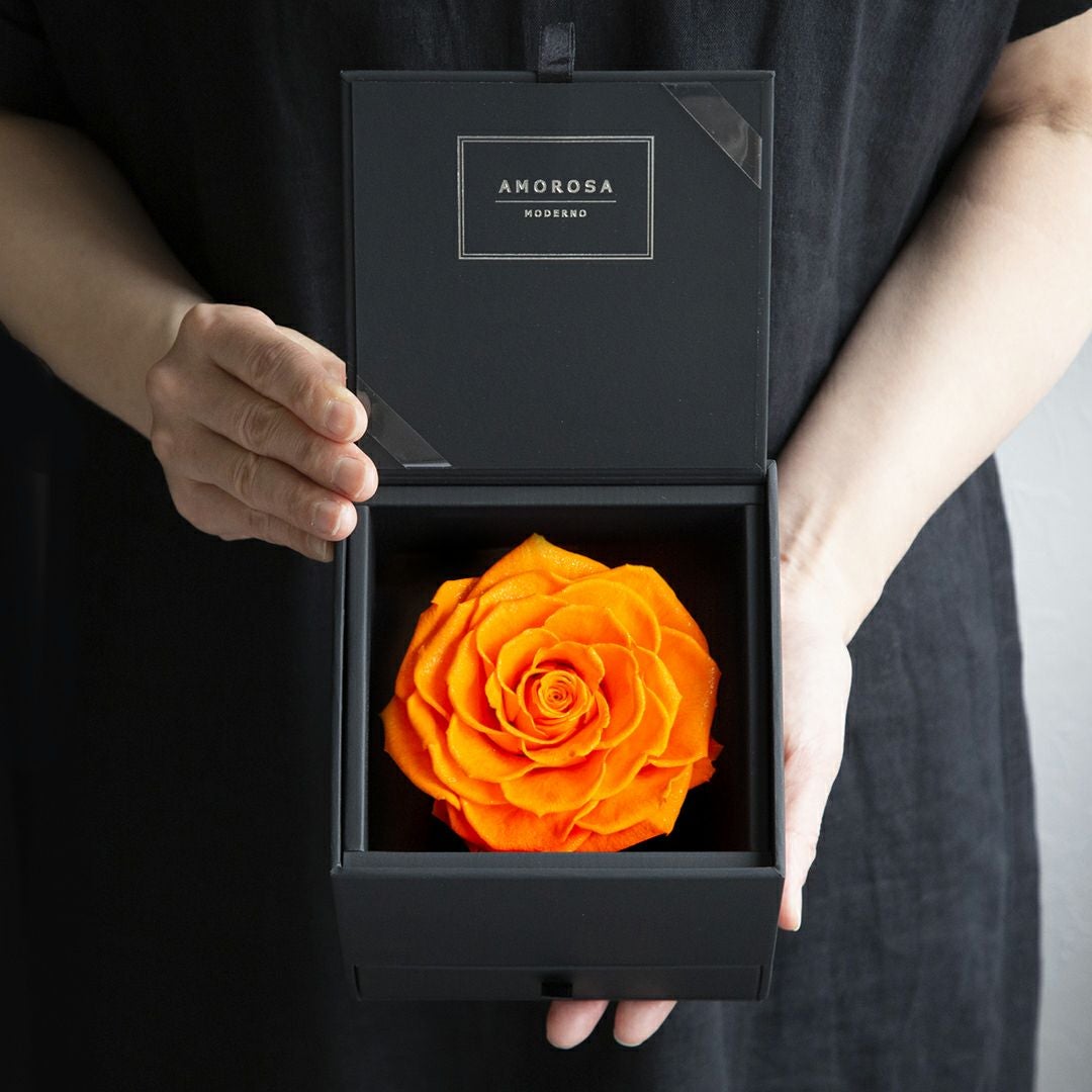 他の画像を見る 語らずとも、想いが満ちる。一枚の薔薇が、空間を変え、記憶に残る パナッシュ(W37-H37) / オレンジ40本(プリザーブドフラワー) 販売価格 ¥ 90,000 税込 AMOROSA MODERNO 詳細を見る お気に入りに登録する