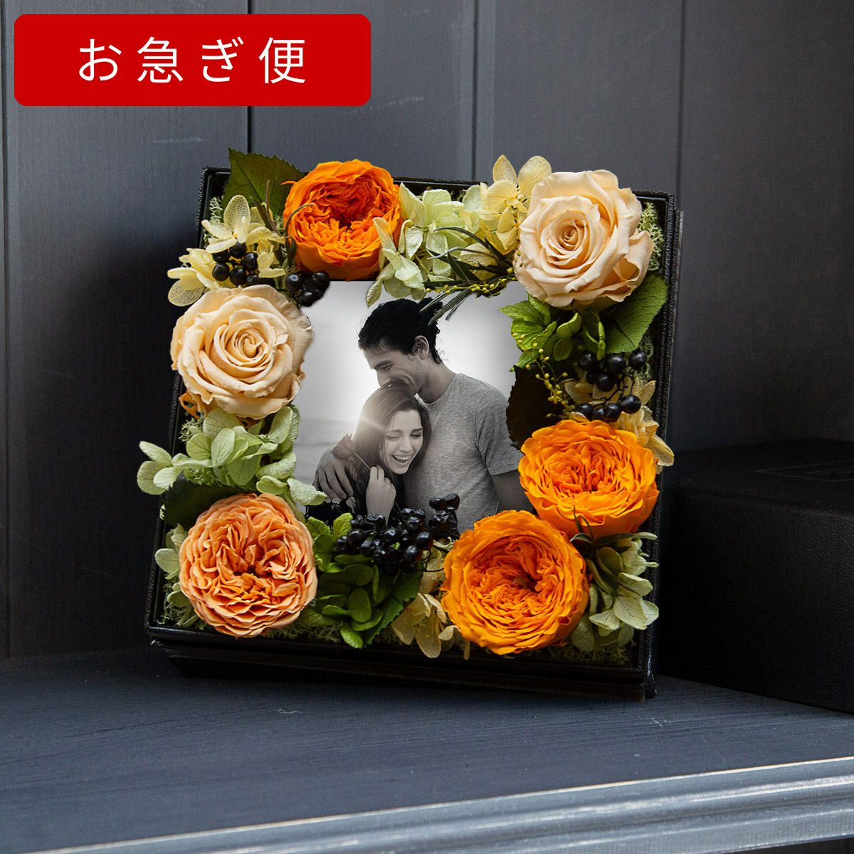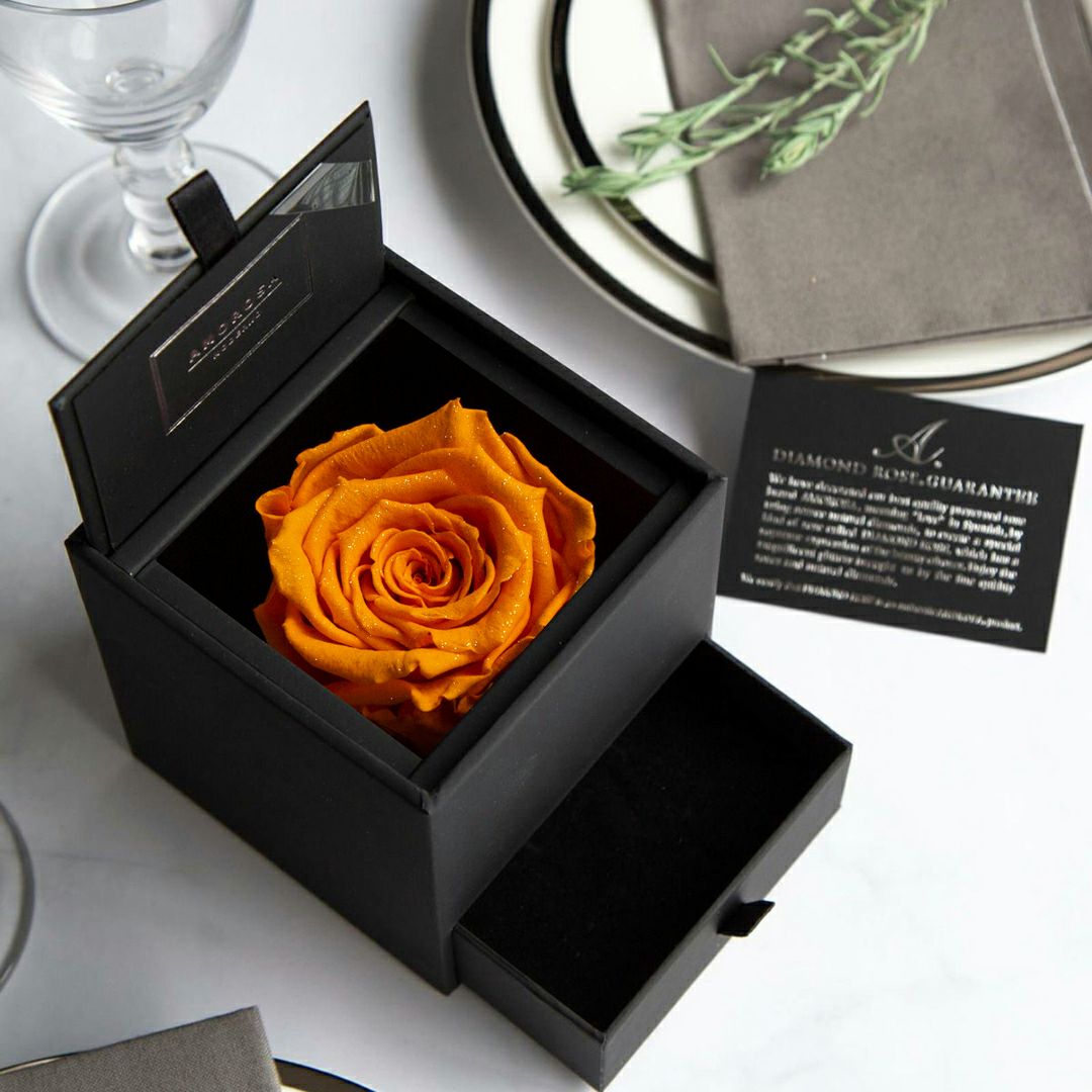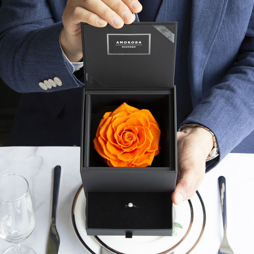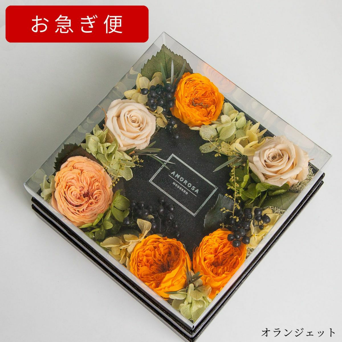 他の画像を見る 語らずとも、想いが満ちる。一枚の薔薇が、空間を変え、記憶に残る パナッシュ(W37-H37) / オレンジ40本(プリザーブドフラワー) 販売価格 ¥ 90,000 税込 AMOROSA MODERNO 詳細を見る お気に入りに登録する