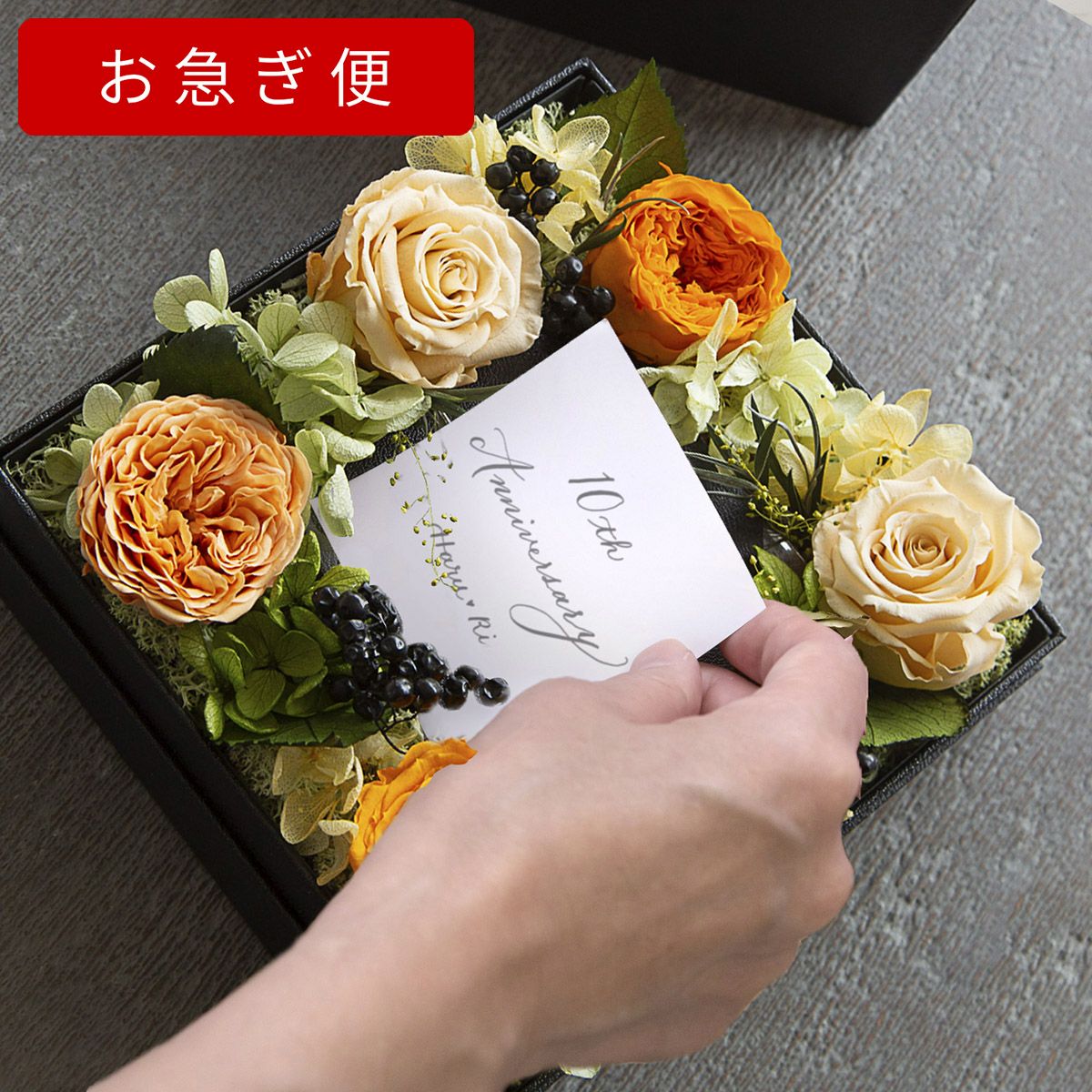 他の画像を見る 語らずとも、想いが満ちる。一枚の薔薇が、空間を変え、記憶に残る パナッシュ(W37-H37) / リミテッドオレンジ40本(プリザーブドフラワー) 販売価格 ¥ 90,000 税込 AMOROSA MODERNO 詳細を見る お気に入りに登録する