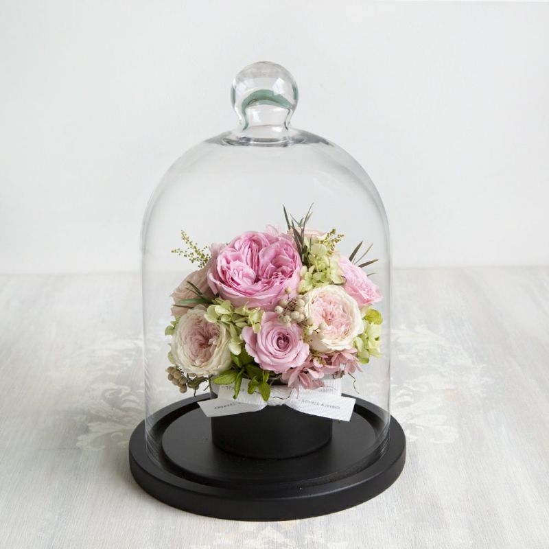 バラが最も美しい瞬間を、ガラスドームにおさめました。