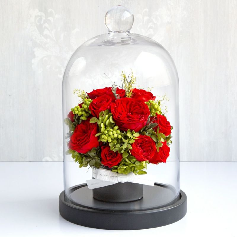 バラが最も美しい瞬間を、ガラスドームにおさめました。