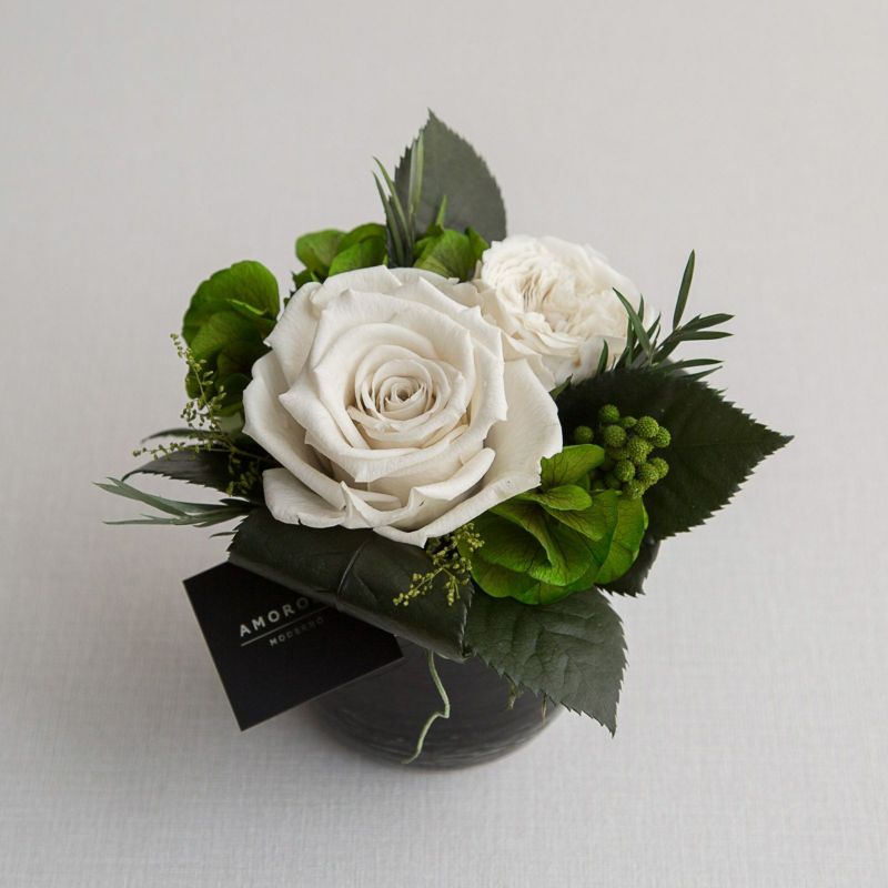 Material:プリザーブドフラワー(ローズ、アジサイ、グリーン、ローズリーフ)/ストーンウエア