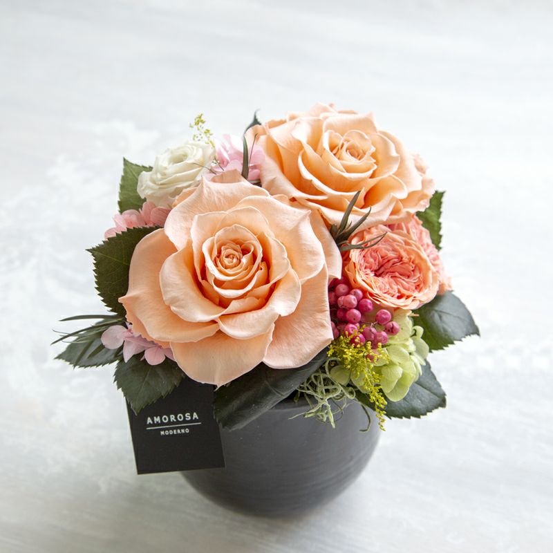 Material:プリザーブドフラワー(ローズ、アジサイ、グリーン、ローズリーフ)/ストーンウエア