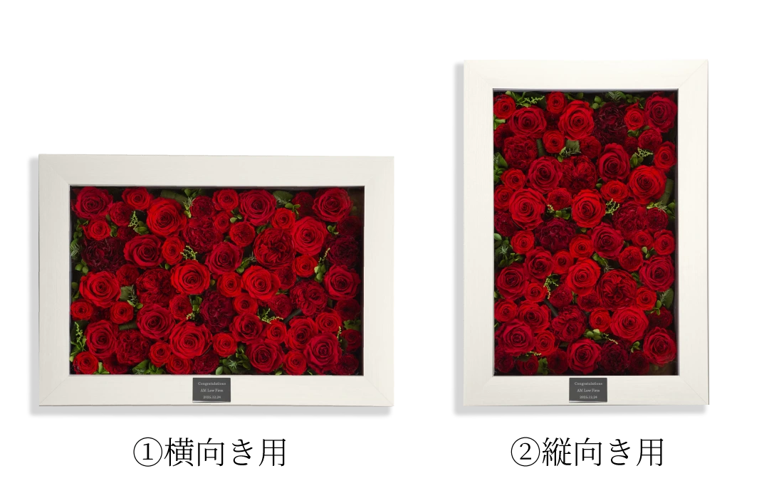 刻印プレートは、フレームを飾る向き(縦・横)に合わせて配置できます。