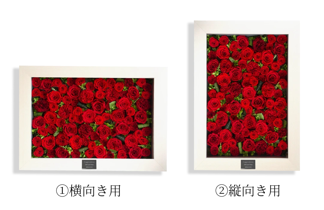刻印プレートは、フレームを飾る向き(縦・横)に合わせて配置できます。