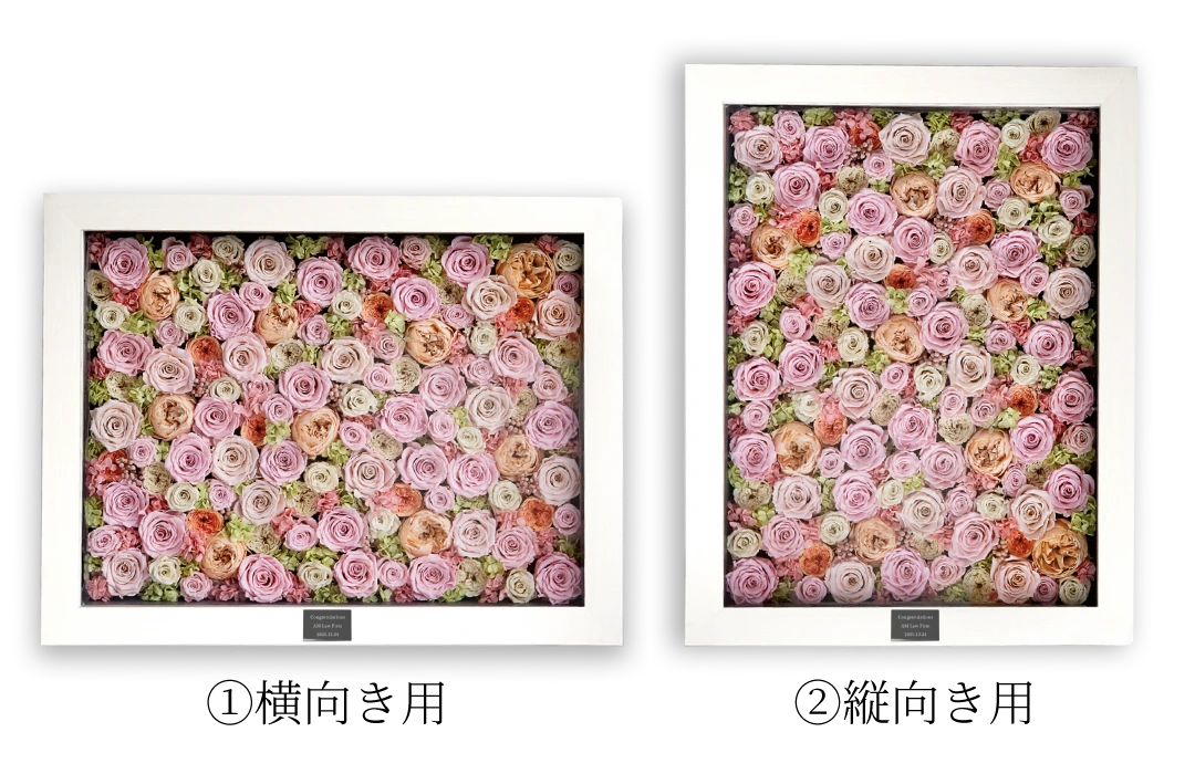 MATERIAL:プリザーブドフラワー(ローズ、アジサイ、グリーン)/フレーム(アルミ複合板、MDF、透明アクリル、吊り金具、吊り紐、直掛け用ビス付き/日本製)