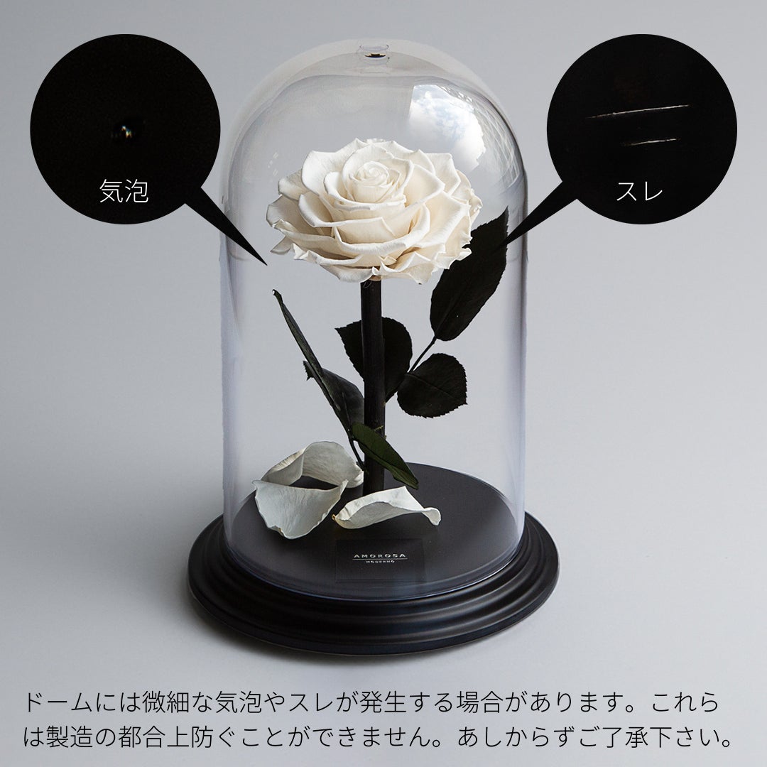 クリスタルガラスと同等の透過率を持ち、ガラスの250倍の強度がある有機ガラスでローズの美しさをご堪能いただけます。