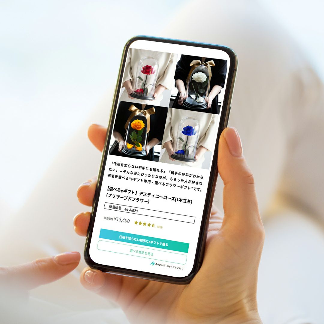 当サービスは、eギフトサービス「Any Gift」(運営会社:AnyReach株式会社)を通じて提供しております。