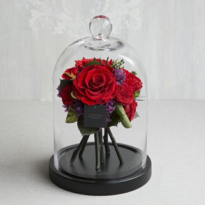 摘みたてのローズをみずみずしいままに、ガラスドームに閉じ込めました。