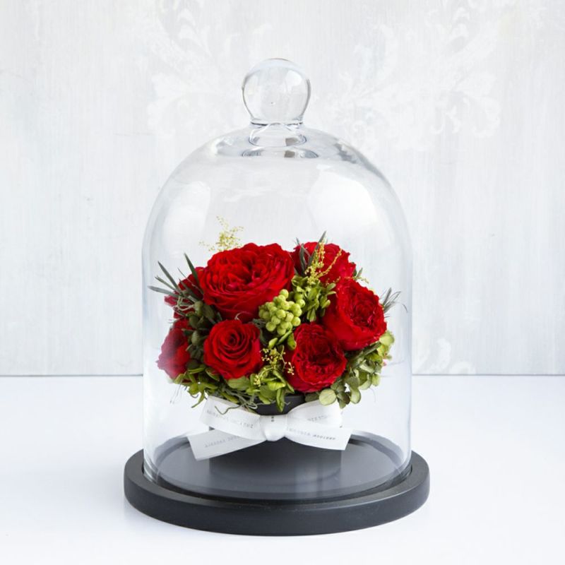 バラが最も美しい瞬間を、ガラスドームにおさめました。