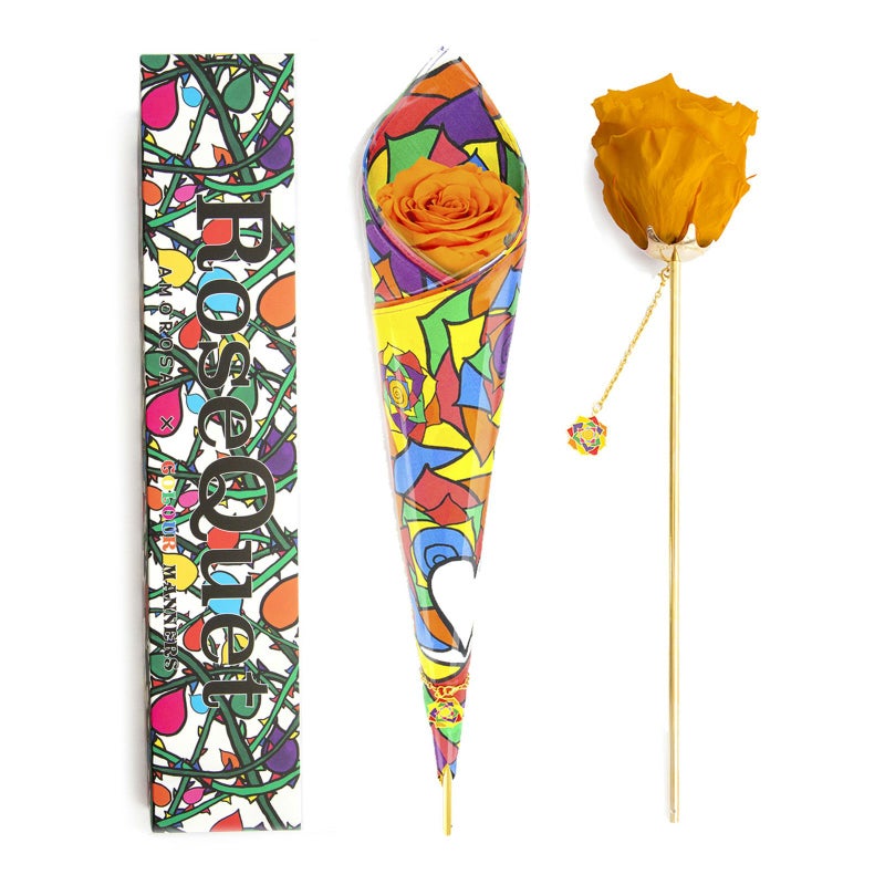 パッケージの細部にもこだわりました。COLOUR MANNERSアーティストERILE.T氏によって生み出されたローズケットオリジナルアートが、ボックスの表、裏、内側の全ての面にほどこされています。