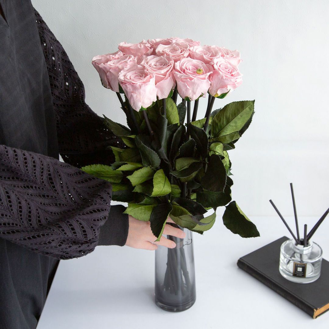 他の画像を見る デスティニーローズ(2本立ち・ビジネス用)/フェミニンピンク (プリザーブドフラワー) 販売価格 ¥ 28,000 税込 AMOROSA MODERNO 詳細を見る お気に入りに登録する