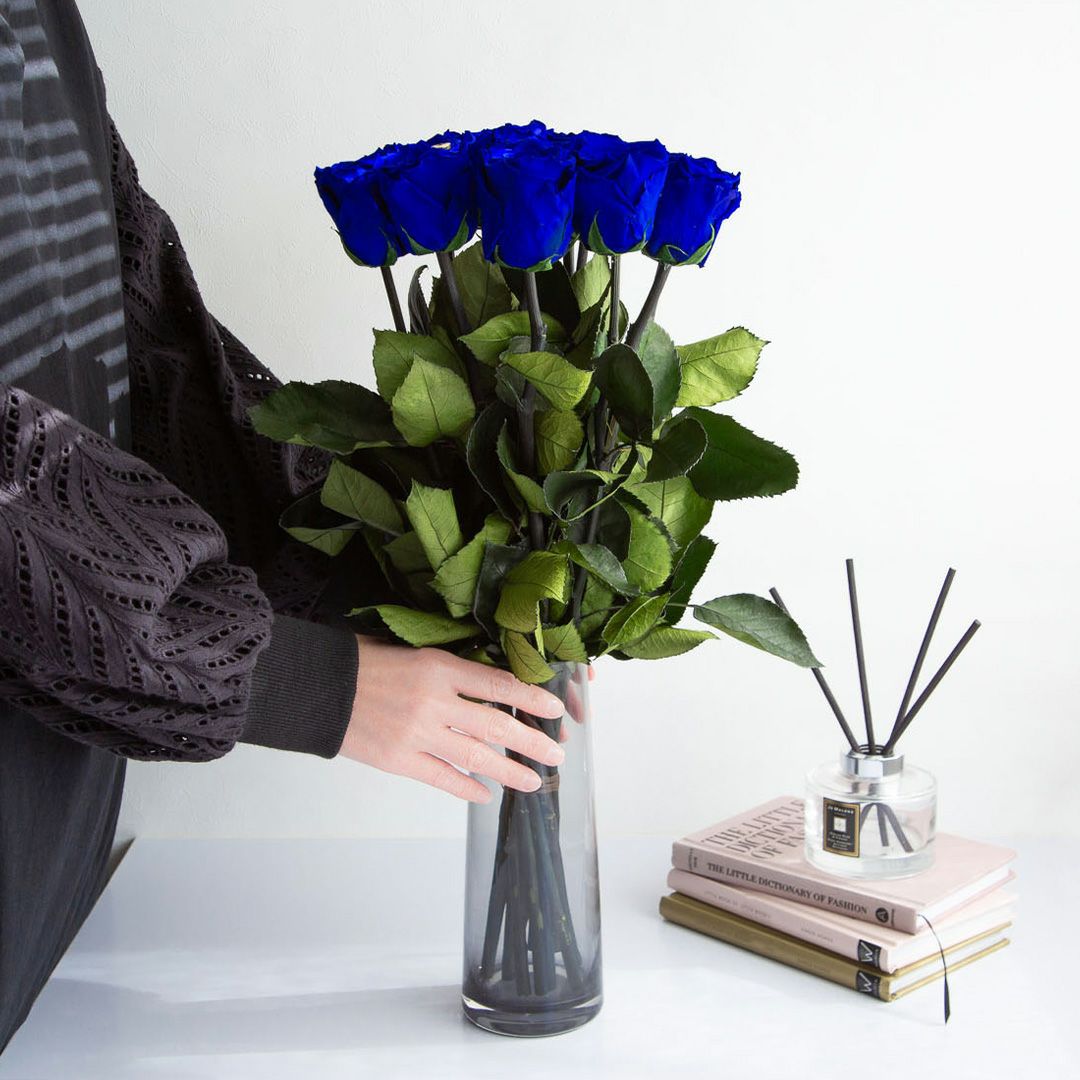 他の画像を見る デスティニーローズ(2本立ち・ビジネス用)/エクセレントブルー (プリザーブドフラワー) 販売価格 ¥ 28,000 税込 AMOROSA MODERNO 詳細を見る お気に入りに登録する