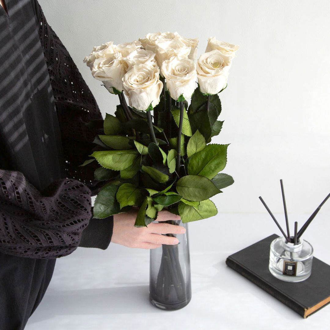 他の画像を見る デスティニーローズ(2本立ち・ビジネス用)/プラチナホワイト (プリザーブドフラワー) 販売価格 ¥ 28,000 税込 AMOROSA MODERNO 詳細を見る お気に入りに登録する