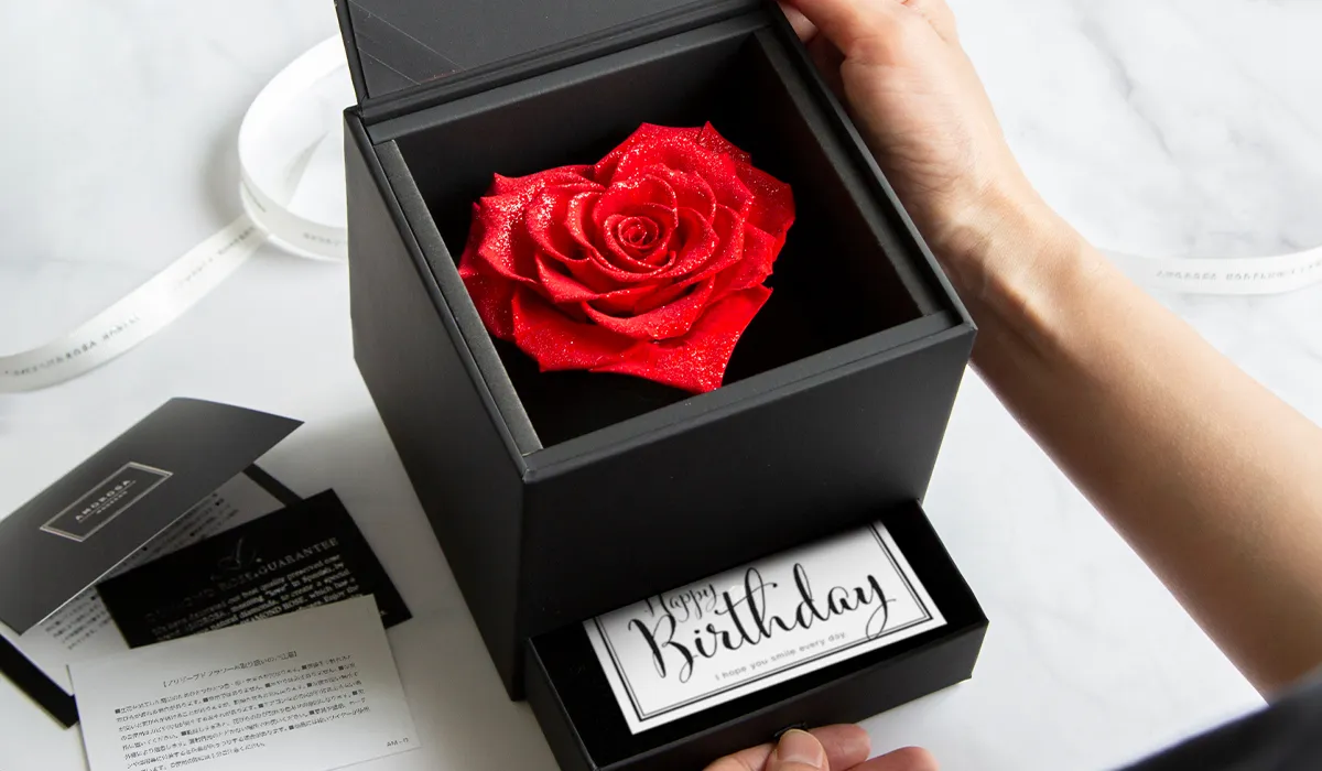 誕生日には、AMOROSA MODERNOのプリザーブドフラワーで、愛情や祝福の気持ちを表現してみてはいかがでしょうか?