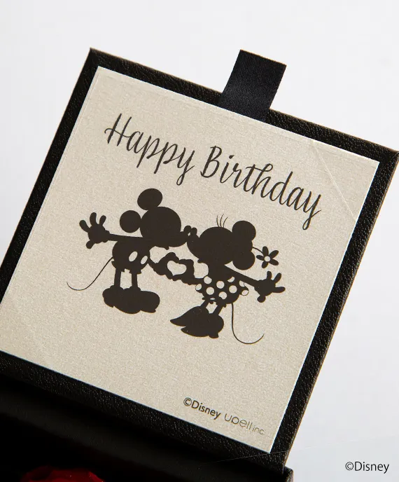 ディズニーが大好きな友人へ、この誕生日ギフトは、箱を開けると、永遠の恋人ミッキーとミニーが愛らしいポージングで出迎えてくれます。ダイヤモンド煙めくバラとともに、あなたの想いを大人っぽく、そして愛らしく伝えてみてはいかがでしょう。