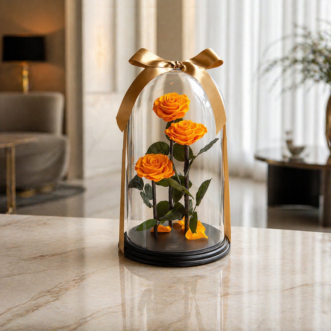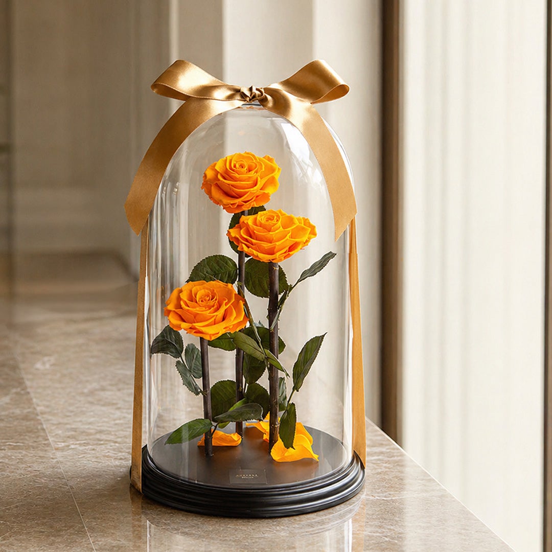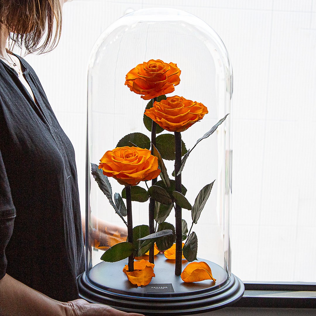 クリスタルガラスと同等の透過率を持ち、ガラスの250倍の強度がある有機ガラスでローズの美しさをご堪能いただけます。