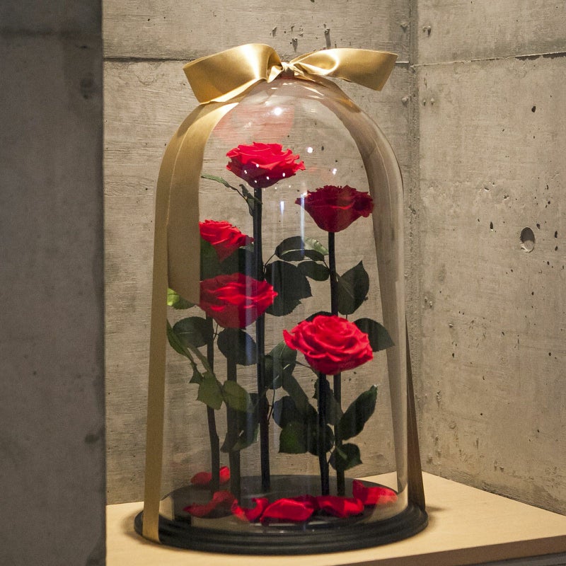 透明のドームに守られて花開くプレミアムローズ。