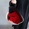 余計な装飾を控え、バラそのものの美しさを引き立てるシンプルなデ ザイン。特別な想いが、花束そのものに込められています。