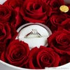 円く彩られたローズの中央に、プロポーズリングやエンゲージリングがセットできるホルダーをセットしました。