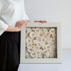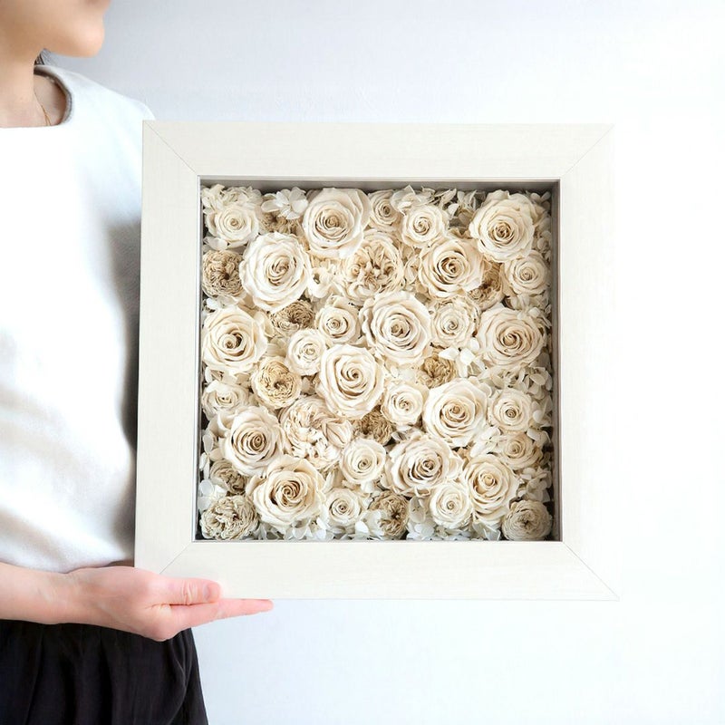 MATERIAL:プリザーブドフラワー(ローズ、アジサイ)/フレーム(アルミ複合板、MDF、透明アクリル、吊り金具、吊り紐、直掛け用ビス付き/日本製)