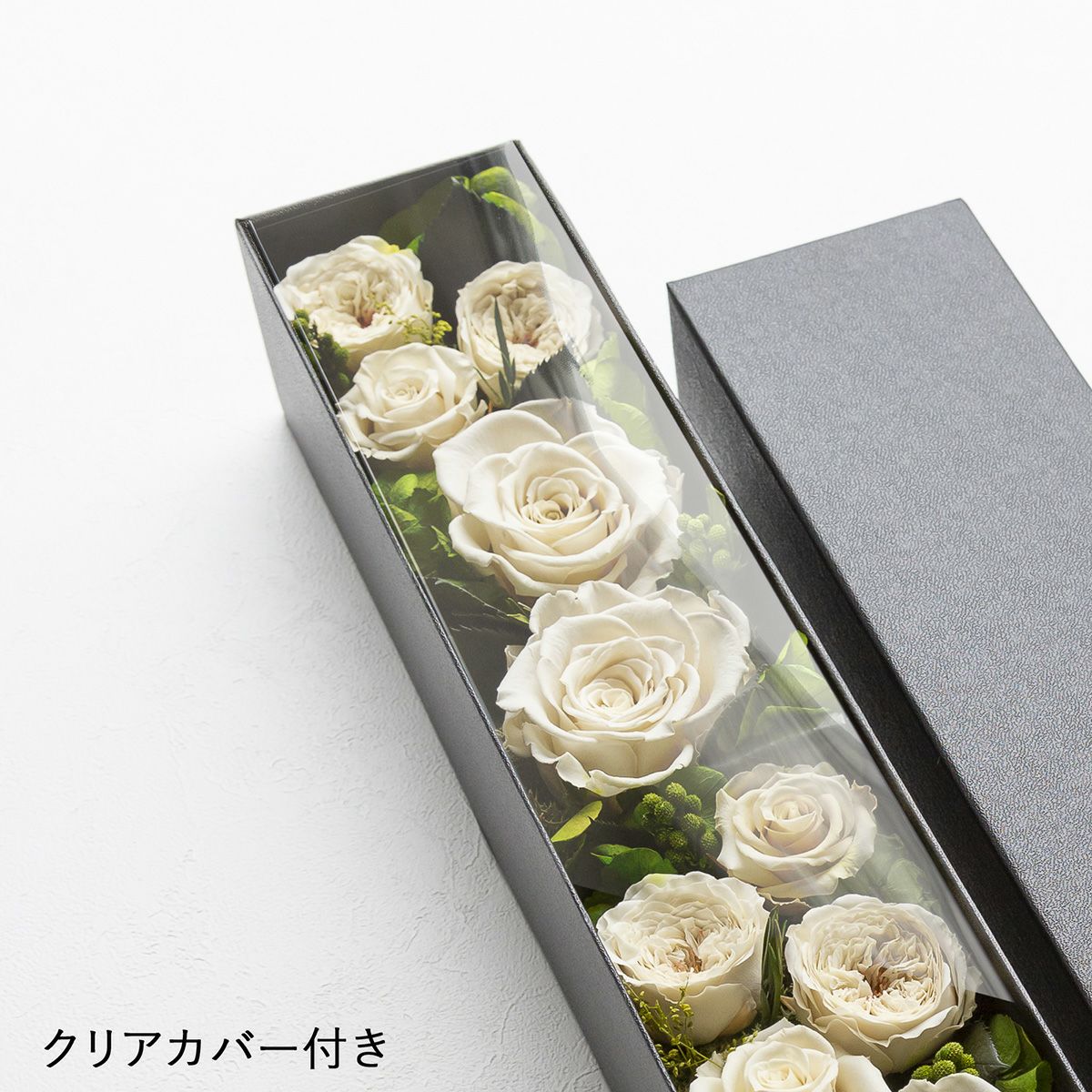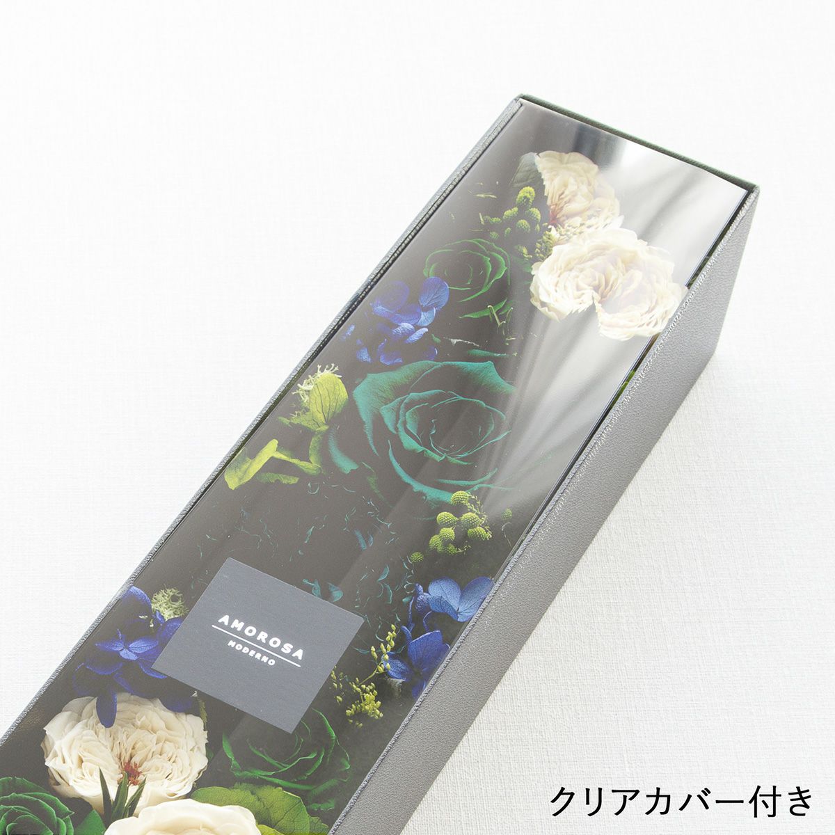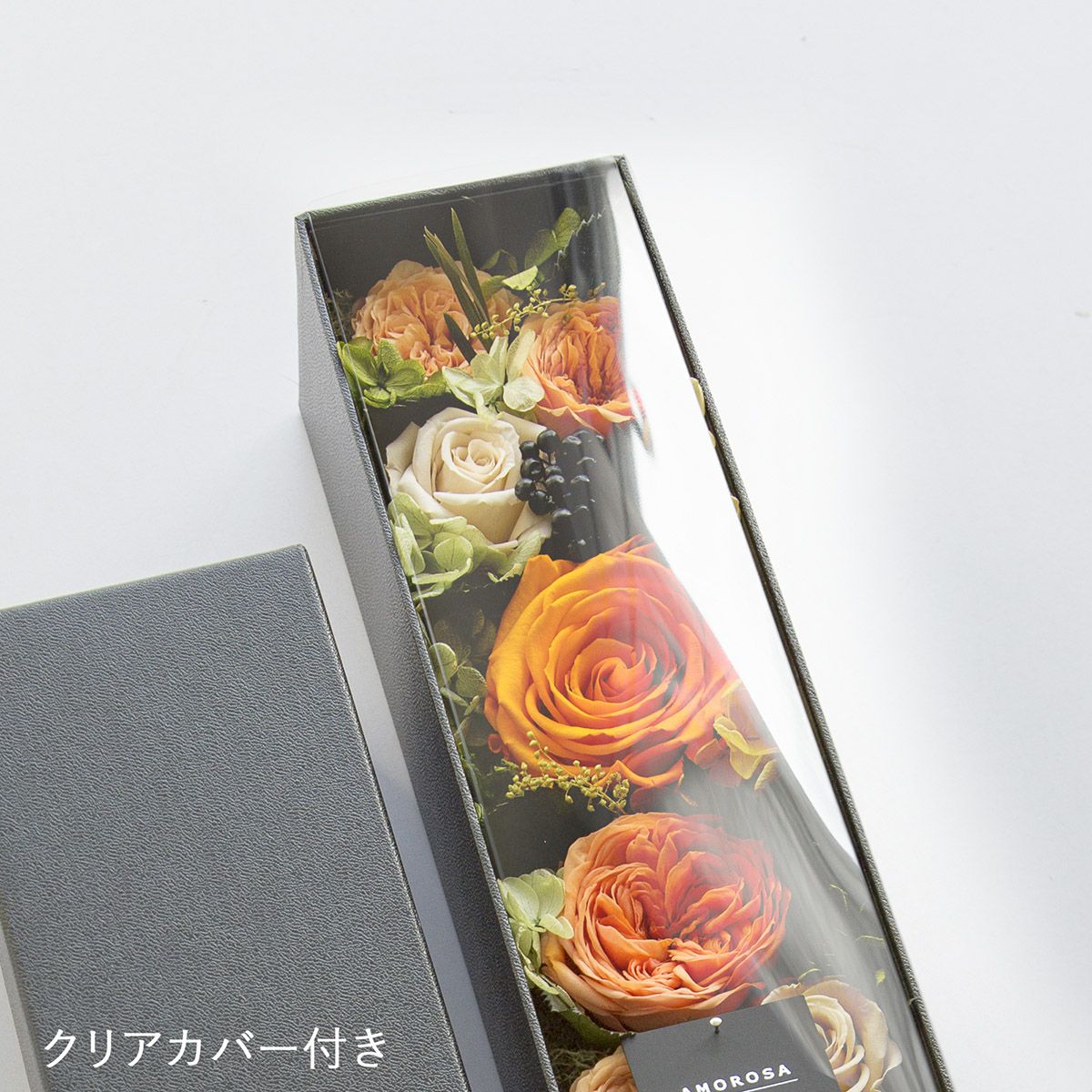 大切な花をホコリから守ってくれるクリアカバー付き