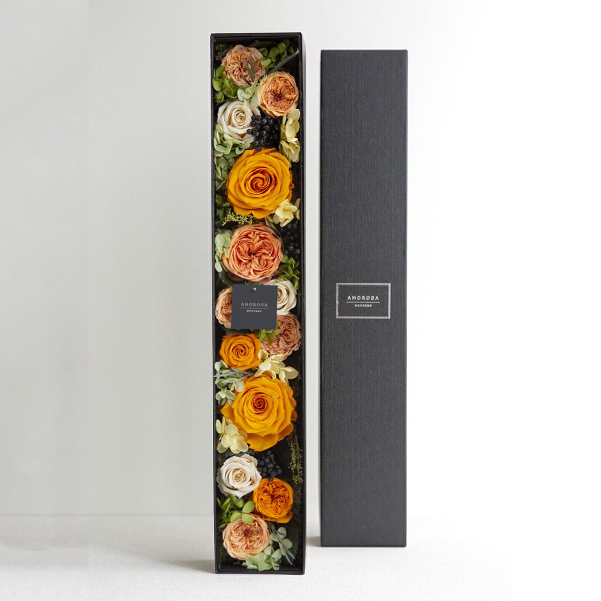 スタイリッシュなAMOROSA MODERNOは、ブティックのディスプレイにアクセントを加え、商品を一層引き立てます。店内の雰囲気を華やかに演出し、商品やブランドの魅力を引き立てるインテリアとして人気のお祝い花です。