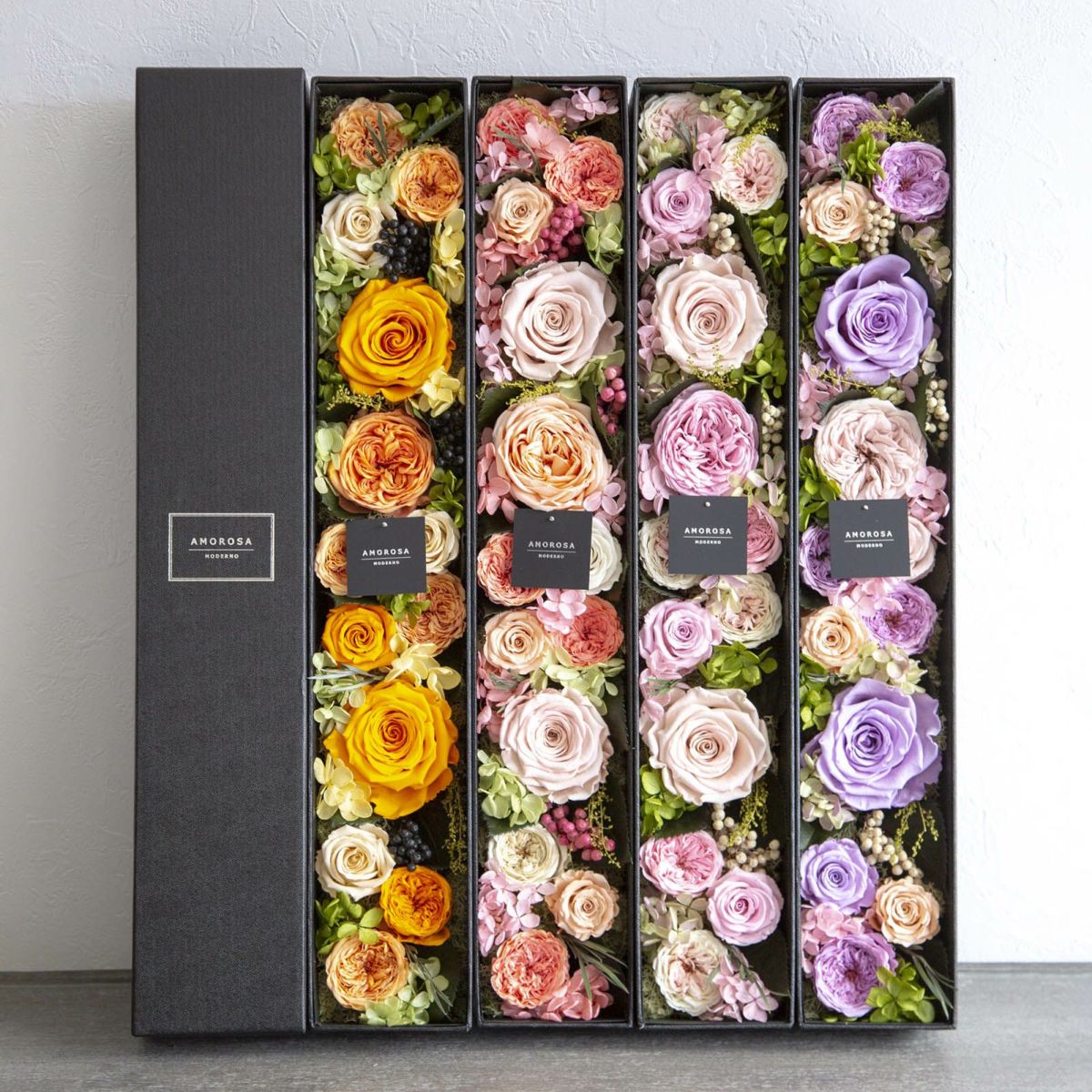 AMOROSA MODERNOのプリザーブドフラワーは、手入れ不要で、長く美しさを保ち続けます。花粉や匂いが少なく清潔なので、どんな場所でも安心して飾っていただけます。忙しいオーナー様に配慮した心の伝わる特別な花で、開店・開業を華やかに彩りましょう。