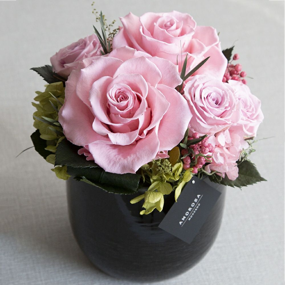 イヴ(M)/フェミニンピンク花びんつき花束 (プリザーブドフラワー)