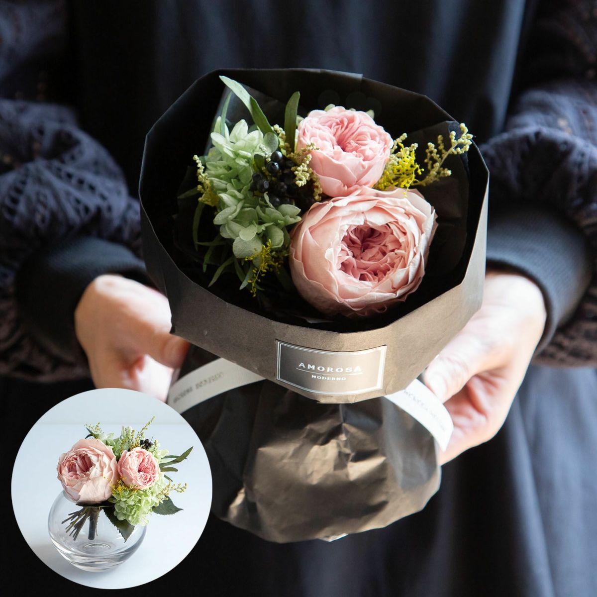 イヴ(S)/フェミニンピンク花びんつき花束 (プリザーブドフラワー)