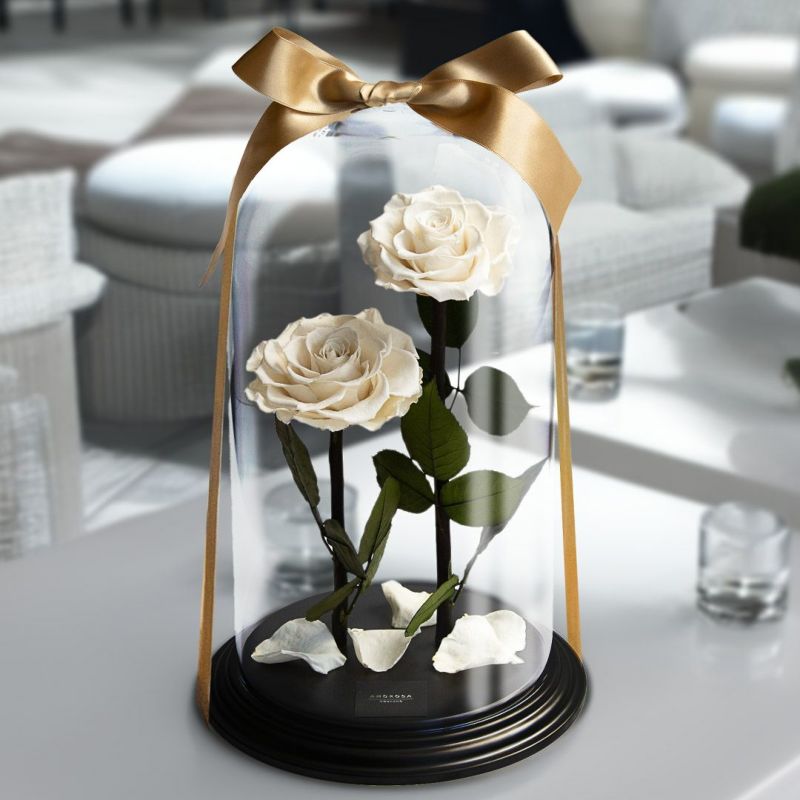 デスティニーローズ(2本立ち)/プラチナホワイト (プリザーブドフラワー)