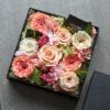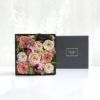 Material:プリザーブドフラワー(ローズ、アジサイ、グリーン、ローズリーフ)/ペーパーボックス/透明カバー
