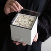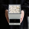 お客様に特別な体験を提供するため、貼り箱にこだわりました。触り心地はしっとりとした高級感を感じることができます。エンボス加工による凸凹デザインは目で見るだけでなく、指先でも楽しめます。強度と品質にも配慮し、厚手の紙を使用しています。銀の箔押しロゴは上質さを演出し、贈り物や特別な場面にぴったりです。特別な体験と喜びを提供するために、細部までこだわった貼り箱です。