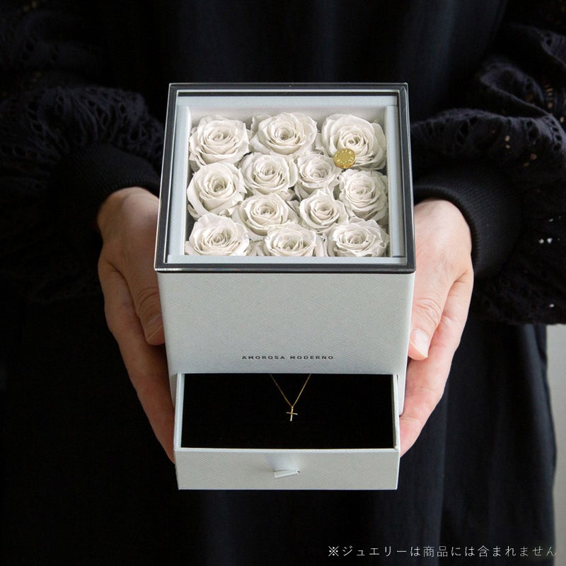 AMOROSA MODERNOが展開する「ダーズンローズ」シリーズは、全てプリザーブドローズ「AMOROSA」を使用しています。贈る時の貴い想い、贈られた時の感動と喜びを形として残しておくことができます。