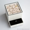 12の花言葉が記されたダーズンローズカードや、メッセージカード、取扱説明書など、様々なカード類を大切にしまっておけるように、ボックスに引き出しを付けました。