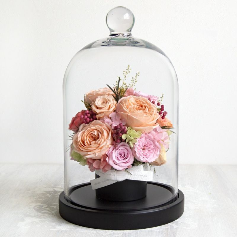 バラが最も美しい瞬間を、ガラスドームにおさめました。