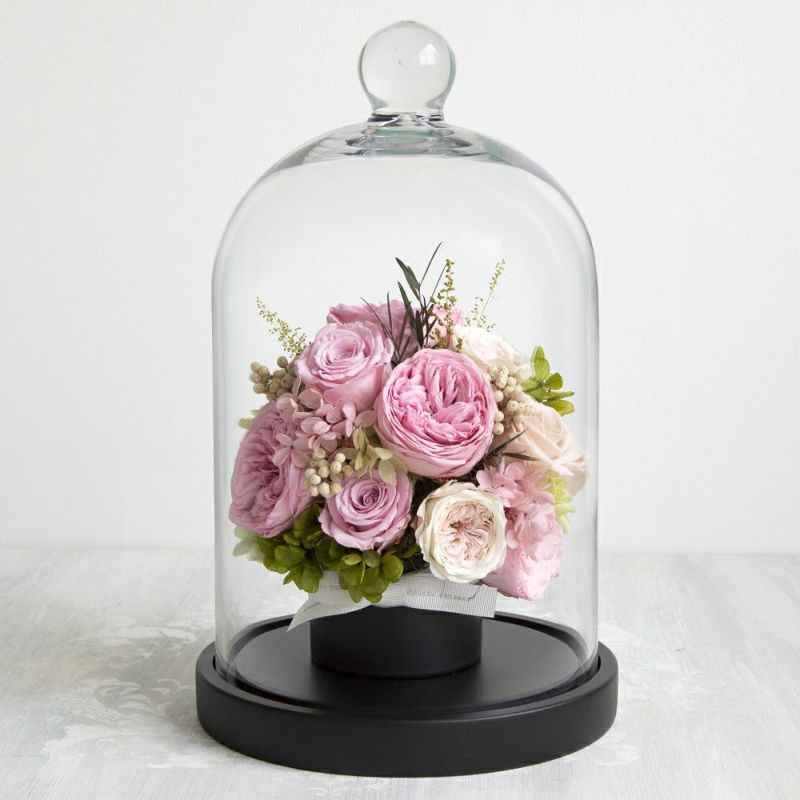 バラが最も美しい瞬間を、ガラスドームにおさめました。