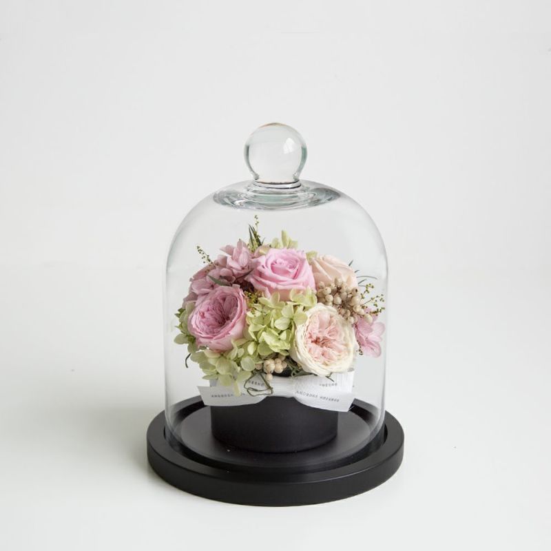 バラが最も美しい瞬間を、ガラスドームにおさめました。