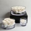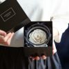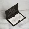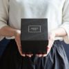 エンボス加工の化粧紙に銀の箔押しロゴが高級感を演出。厚手の紙で強度と重厚感を持たせた、特別な贈り物や記念日にふさわしいギフトボックスです。