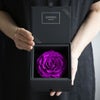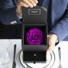 MATERIAL:プリザーブドフラワー(ダイヤモンドローズ)/ペーパーボックス、透明スリーブ、リボン、ジュエリークッション