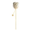 ブーケの足元で輝くメタルチャームは、ハンカチをほどいた後、ローズのガク部分に取り付けることができます。